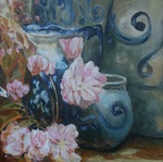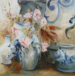 2012Stilleven met Keulse potten en Bloesem van Prunus